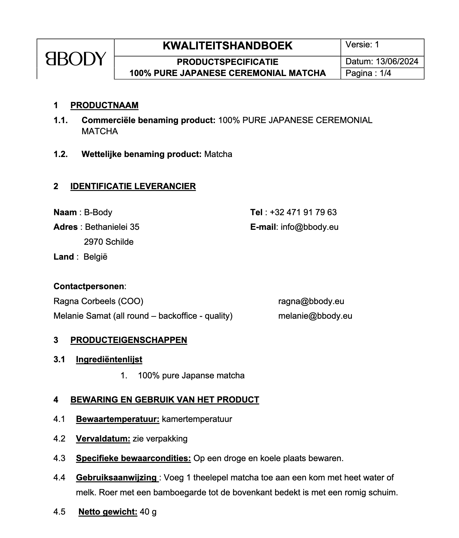 B-BODY BV, Bethaniëlei 35, 2970 Schilde, België BE0751.795.332
