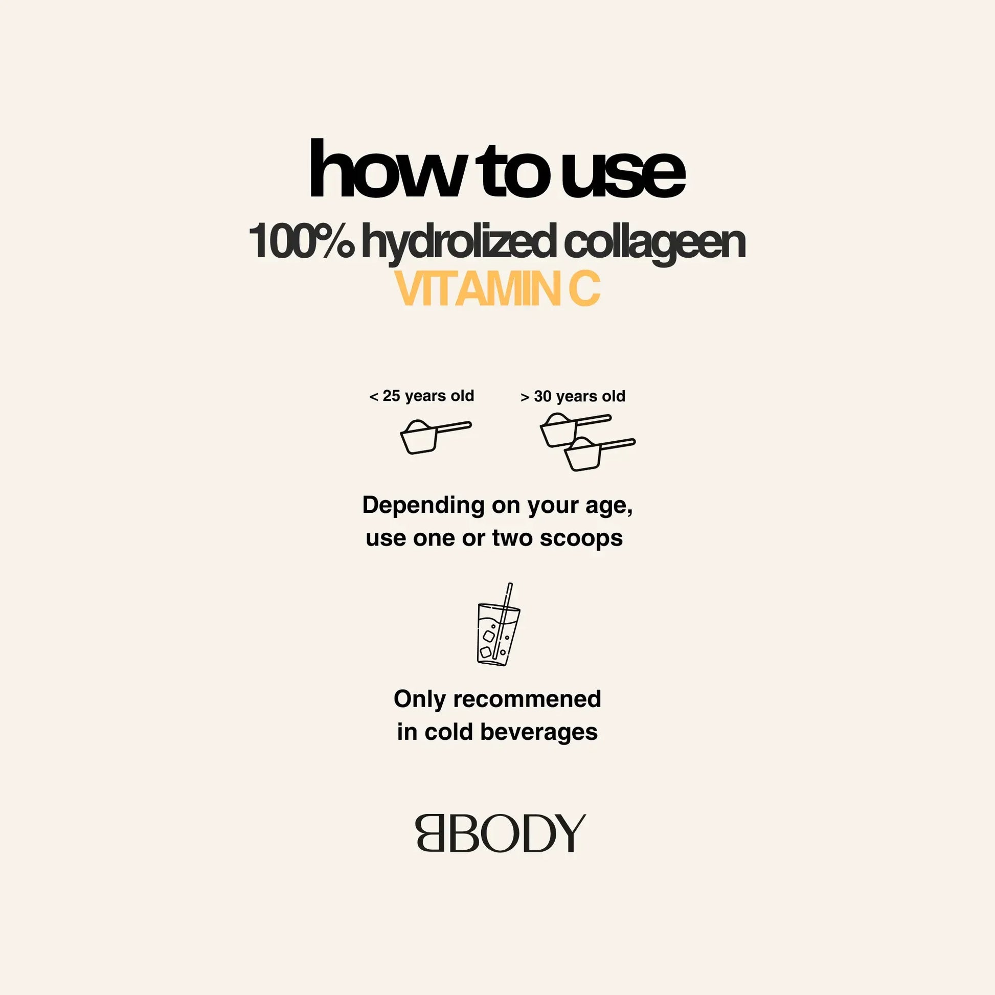 Voor optimaal resultaat: Niet mengen met warme dranken, om de effectiviteit van het collageen en de vitamine C te behouden.